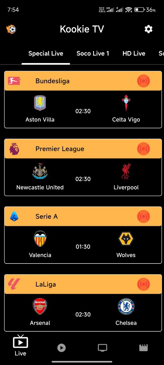 ဘောလုံးပွဲစဉ်များကို မလွတ်တမ်းကြည့်ရှု့နိုင်ပြီး ၊ Server အဆင်မပြေမှု မရှိစေရန်အတွက် ပွဲစဉ်များကို လိုင်းအမျိုးမျိုး ပြောင်းကြည့်နိုင်ပါသည်။